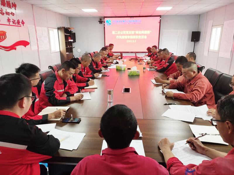 2022年6月5日,第二分公司黨支部組織支部黨員、職工代表召開“兩去兩服務”作風整頓專題組織生活(視頻)會。二分公司黨支部副書記黃平主持會議,二分公司黨支部書記、經理程靜,二分公司領導班子成員、在崗黨員及非黨員職工代表參加會議。