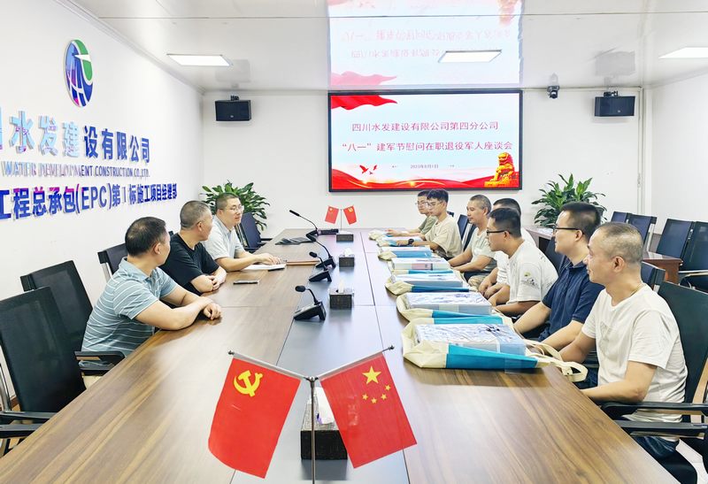 為慶祝中國人民解放軍成立96周年,進一步弘揚擁軍愛軍的優(yōu)良傳統(tǒng),持續(xù)做好雙擁工作,2023年8月1日,四分公司在亭子口項目部召開慰問在職退役軍人座談會。四分公司副經(jīng)理、亭子口項目一支部副書記張亮亮,工會主席袁小峰,分公司部分在職退役軍人及青年職工代表參加會議。