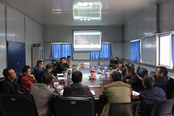 開工儀式結(jié)束后,代勇、袁斌一行在毛偉等陪同下查看了工地現(xiàn)場,當日下午,項目部召開了施工技術(shù)研討會議,袁斌、但凱在會上提出意見并作要求。