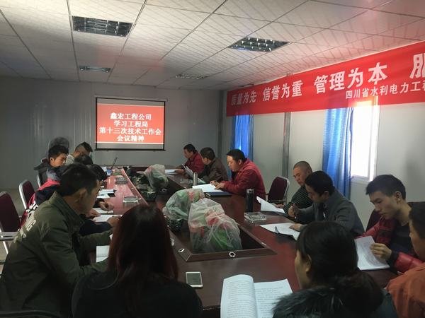 2017年11月24日中午,鑫宏公司在水洛河新藏電站項(xiàng)目部會(huì)議室組織召開(kāi)專題會(huì)議,傳達(dá)學(xué)習(xí)2017年工程局第十三次技術(shù)工作會(huì)議精神,會(huì)議由公司總工程師鄭中華主持。