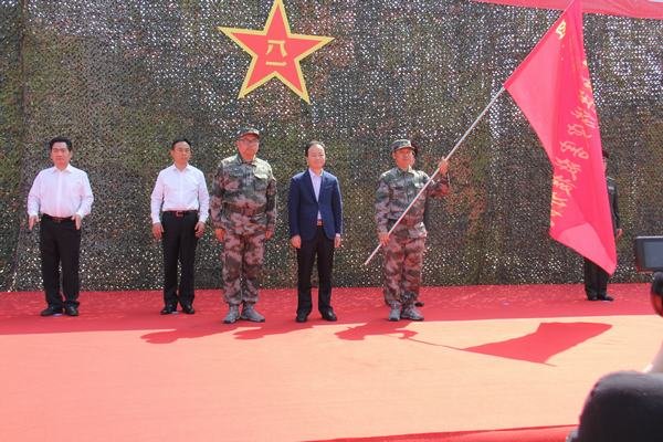 成立大會在《中華人民共和國國歌》聲中拉開序幕。大會宣讀了民兵干部任職命令和黨組織預建通知;市委副書記、市政府市長陳吉明將印有“四川省民兵洪澇災害救援分隊”紅底黃字的旗幟授予我局救援分隊分隊長范雪山與指導員趙曉輝,并對資陽市民兵應急營、雁江區民兵應急連、安岳縣民兵應急連、樂至縣民兵應急連授旗;面對鮮紅的國旗,全體官兵莊嚴宣誓;資陽市民兵應急營一名民兵代表全體民兵表決心。