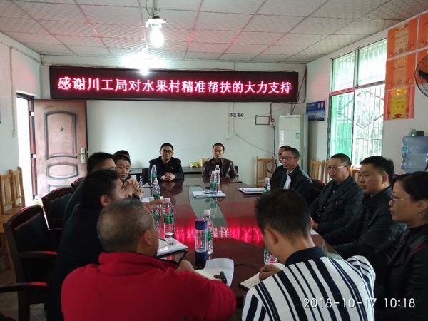 2018年10月17日,在我國第五個“扶貧日”之際,工程局黨委副書記、工會主席代勇率局黨辦主任、勞動人事處處長夏永紅、工會副主席付麟麗、辦公室副主任周勝一行,赴資陽市安岳縣千佛鄉(xiāng)水果村開展精準扶貧捐贈活動。千佛鄉(xiāng)黨委書記呂麟熙、鄉(xiāng)長張軍、副書記丁飛鷹、人大主席楊剛、副鄉(xiāng)長羅朝暉,工行安岳支行副行長唐永宏等相關負責人及水果村“兩委”班子成員、各社社長、駐村工作隊隊員參加了捐贈活動。