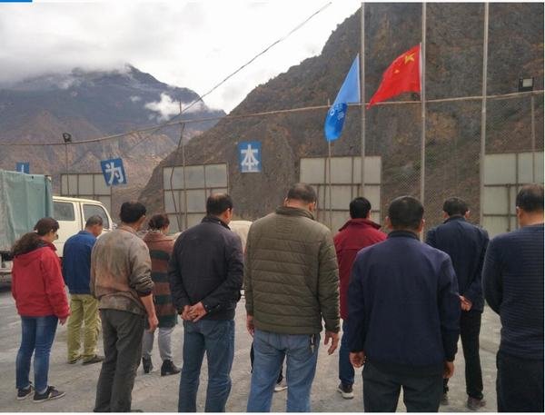 4月4日10時,水洛河新藏電站工程項(xiàng)目經(jīng)理部全體員工自發(fā)在營地國旗下集合,降半旗舉行默哀儀式,沉痛默哀三分鐘,向在“3.30四川木里森林火災(zāi)”犧牲的英雄們致敬,愿他們一路走好!