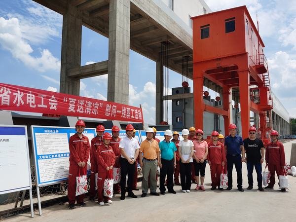 2020年7月3日,四川省水利電力工會副主席張玉奎帶領辦公室主任蘇吉斌、干事王妍一行,前往公司承建的金堂縣沱江盤龍寺攔河閘工程項目工地,看望慰問高溫下工作的一線職工,為他們送去了防暑降溫物品、慰問金和貼心的關懷,讓職工體會到組織送去的絲絲清涼,背后是維護職工權益的拳拳之心。