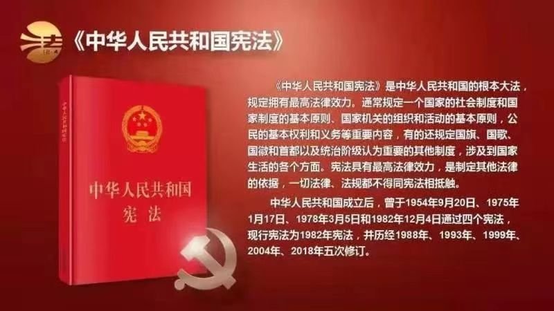 自中華人民共和國成立后,曾于1954年9月20日、1975年1月17日、1978年3月5日和1982年12月4日通過四個憲法,現(xiàn)行憲法為1982年憲法,并歷經(jīng)1988年、1993年、1999年、2004年、2018年五次修訂。在2014年11月1日召開的十二屆全國人大常委會第十一次會議經(jīng)表決通過了全國人大常委會關(guān)于設立國家憲法日的決定,設立每年12月4日為國家憲法日,因此2014年12月4日即中國首個國家憲法日。