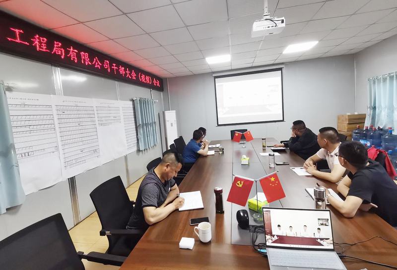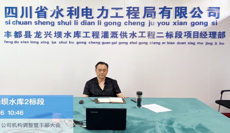 2022年4月26日,工程局公司召開機構調整暨干部(視頻)大會。大會主會場設在公司總部(成都)會議室,資陽、都江堰、龍塘項目部、虎渡溪項目部、小井溝項目部、龍興壩項目部設分會場。會議由公司黨委委員、副總經理李銀剛主持。