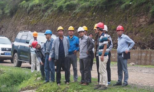 蔣總一行首先對我單位施工的首部樞紐左岸高邊坡開挖及支護情況進行了現(xiàn)場檢查及指導(dǎo),隨后沿途步行對首部樞紐各生產(chǎn)、生活區(qū)域進行了視察,對我部施工生產(chǎn)及生活區(qū)域所采取的一系列防洪及防地質(zhì)災(zāi)害措施工作給予了充分的肯定,同時要求我部仍應(yīng)加強24小時防洪、防災(zāi)害值班制度,加強對左右岸高邊坡、各臨河臨邊部位進行全方位安全監(jiān)控,確保本年度安全度汛。