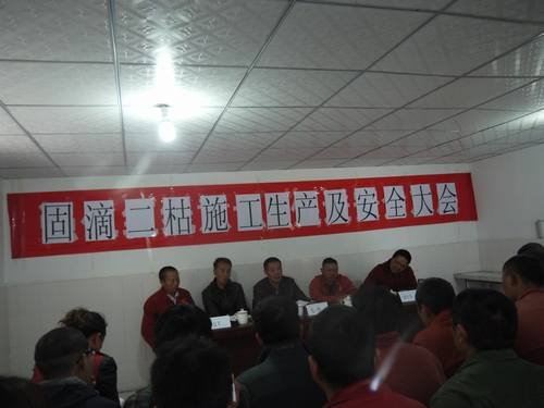 固滴水電站首部樞紐工程合同總工期35個月,一枯由于受征地協調、等待火工產品、設計優化調整等因素制約,導致全年施工任務不飽和。為扭轉該局面,項目部領導班子將二枯施工作為本項目的關鍵,根據施工總進度計劃安排及設計優化調整方案,計劃于2014年11月1日完成河道截流。為確保河道順利截流及二枯完成汛期防洪度汛高程2308m以下的施工任務,項目部于2014年10月27日召開了固滴二枯施工生產動員暨安全大會。會議由固滴項目部常務副經理毛偉主持。