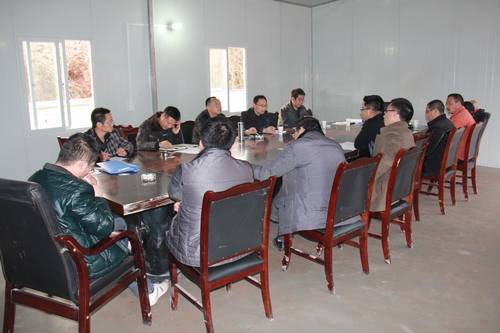 在蟠龍湖水庫項目部,慰問活動結束后,召開了生產經營現場辦公會議,聽取了一處處長范雪山及項目部主要職能部門負責人的工作匯報,汪輝德從強化技術管理和施工組織等方面提出了指導性意見,局經營處處長丁毅從加強經營管理角度提出了建議,董蜀良就抓好經營管理和施工安排、加強與聯營方的合作與溝通協調等方面作出強調與要求。