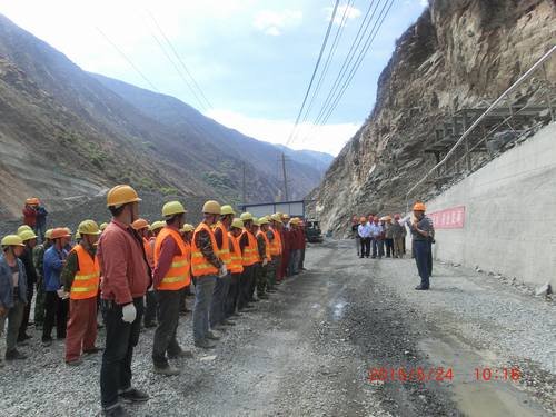 為進一步增強各施工人員的防汛及防災意識,提高緊急事故發生后的逃生技能,切實掌握洪水來臨時的逃生方法,2015年5月24日,固滴項目部舉行了防洪、防地質災害應急演練活動,華電水洛河公司副總經理周有志、安全生產部主任鐘馳,固滴建管部主任晏國順,固滴監理部安全總監李建軍等到場指導。固滴水電站所有參建人員參加了此次演練活動。局鑫宏公司經理毛偉擔任演練總指揮長。