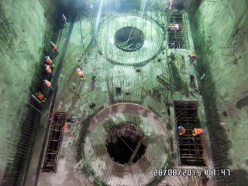 厄瓜多爾當(dāng)?shù)貢r間2015年8月27日,由局二處施工的厄瓜多爾TP水電站一級地下廠房1#、2#機(jī)組達(dá)到發(fā)電機(jī)層957.80高程。