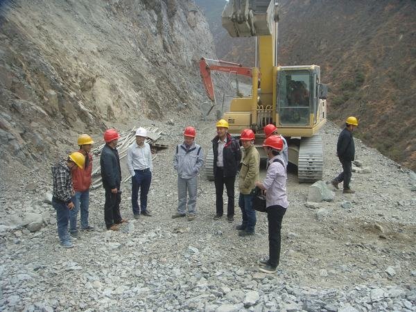 在局鑫宏公司經(jīng)理毛偉、支部書記甘曉華、生產(chǎn)副經(jīng)理及相關(guān)負(fù)責(zé)人的陪同下,蒲總一行先到鉆根項(xiàng)目現(xiàn)場(chǎng)視察,祝賀隧洞的順利貫通,同時(shí)提出隧洞雖初步貫通,但在洞口支護(hù)及擴(kuò)挖方面一定要貫徹落實(shí)“安全第一、預(yù)防為主”的方針,切實(shí)做好安全防護(hù)措施。隨后,蒲總一行又風(fēng)塵仆仆趕到固滴項(xiàng)目施工現(xiàn)場(chǎng),聽取了毛偉對(duì)固滴首部樞紐施工的基本情況介紹,以及對(duì)后續(xù)工作的具體安排計(jì)劃。蒲總對(duì)固滴首部樞紐工程的施工質(zhì)量、安全措施、施工面貌等方面給予了高度評(píng)價(jià),要求項(xiàng)目部再接再厲,組織各施工班組團(tuán)結(jié)協(xié)作,在確保工程質(zhì)量及安全文明施工的前提下,全面推進(jìn)施工進(jìn)度,全力做好三枯工作。