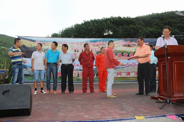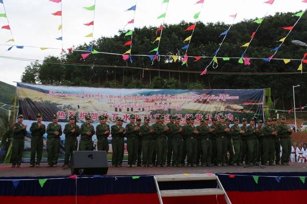 為慶祝首臺(tái)機(jī)組發(fā)電,南板地區(qū)管委會(huì)和911旅特別組織部隊(duì)、地方宣傳隊(duì)到電站施工現(xiàn)場進(jìn)行慰問演出,勐瓦電站參建各方全體人員參加了這次慶祝活動(dòng)。
