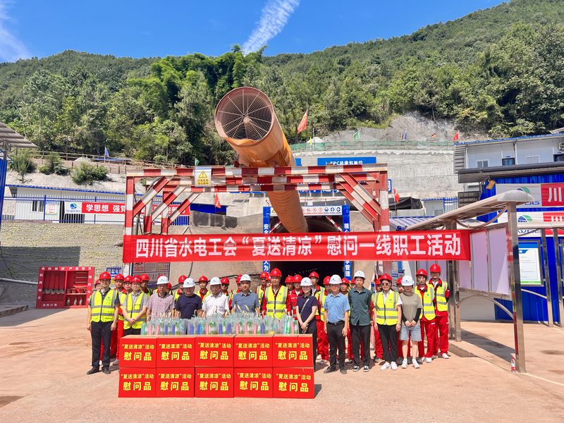 心系職工送清涼,一縷清風(fēng)入心田。2023年7月25日,四川省水利電力工會(huì)副主席張玉奎,水發(fā)集團(tuán)資深高管鄔清富、群團(tuán)工作部部長(zhǎng)馬嵐、副部長(zhǎng)李永靜一行,赴亭子口灌區(qū)一期工程總承包(EPC)第Ⅰ標(biāo)段施工項(xiàng)目?jī)x隴縣先鋒鎮(zhèn)二郎村隧洞開(kāi)展“夏送清涼”慰問(wèn)及安全監(jiān)督檢查活動(dòng),向亭子口灌區(qū)一期工程施工一線干部職工送去防暑降溫物品,將省水電工會(huì)、集團(tuán)的關(guān)心送到職工身邊。